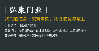 • 河北弘康門業(yè)有限公司     河北弘康門業(yè)有限公司是一家生產(chǎn)防爆門窗、泄爆門窗、密閉門窗、防火門窗、監(jiān)獄門、隔音門、變壓器門,隧道抗風壓防火門,隧道防護門,3小時防火門窗,防火玻璃門,雙向開啟防火門等特種門窗的生產(chǎn)廠家。河北弘康門業(yè)有限公司一直致力于防爆技術、新產(chǎn)品的研究開發(fā)工作。
